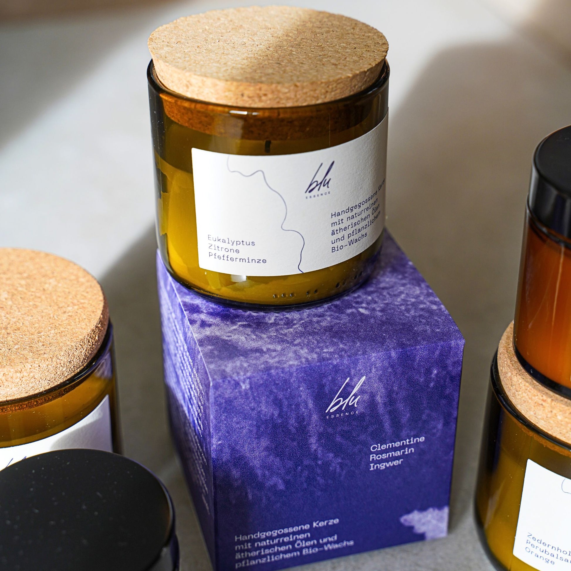 Ob zum Geburtstag, zu Weihnachten oder einfach als liebevolle Überraschung zwischendurch: blu essence steht für kleine Glücksmomente im Alltag – mit Kerzen aus Bio-Sojawachs, naturreinen ätherischen Ölen und achtsamen Erlebnissen rund um das Thema Duft.