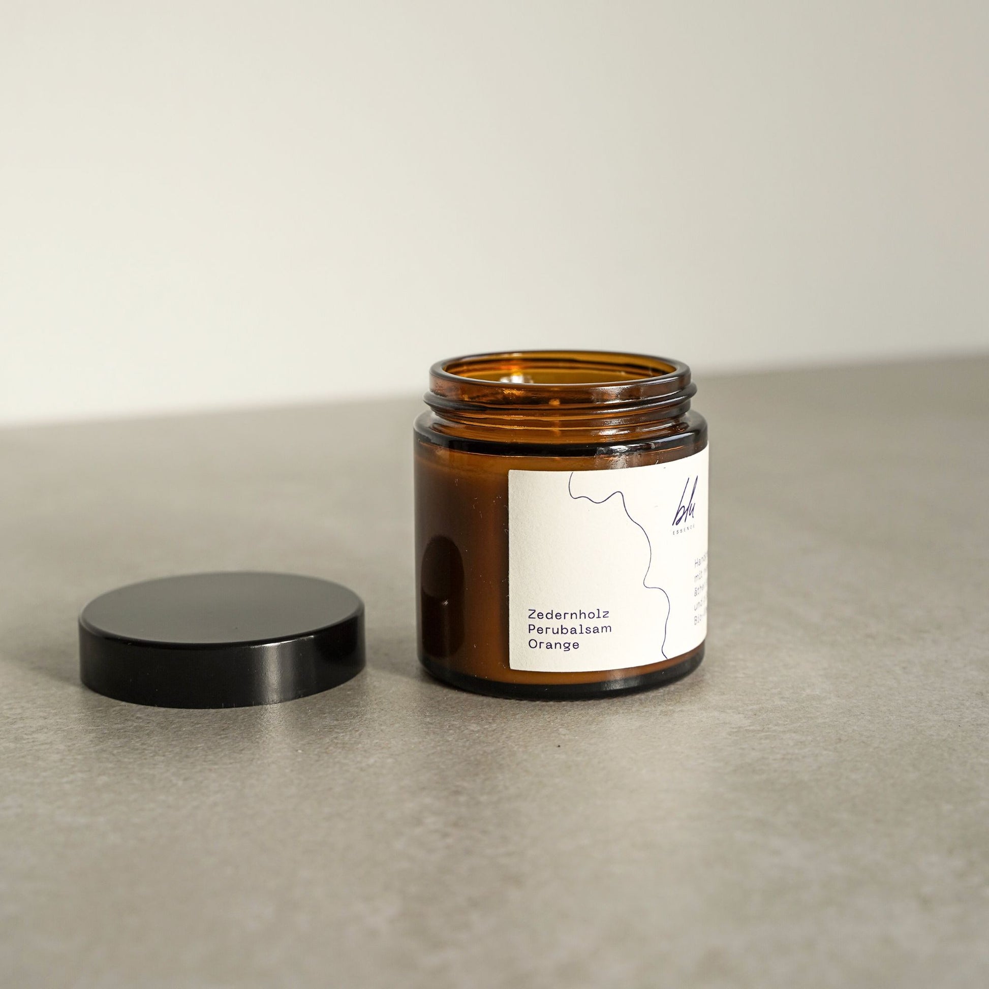 Jede Kerze wird von Hand in Deutschland gegossen – aus Bio-Sojawachs und naturreinen ätherischen Ölen. Nachhaltig, vegan und frei von Paraffin, Palmöl und synthetischen Duftstoffen.